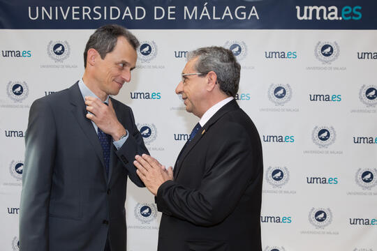 Pedro Duque y José Ángel Narváez. Edificio del Rectorado. Junio de 2018